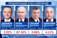 Путин набирает более 87, 33% голосов после обработки 99% протоколов