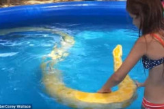 Աղջիկը լողում է հսկայական պիթոնի հետ
