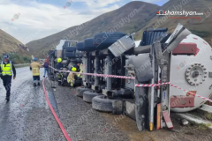 Երևան-Սևան-Իջևան ճանապարհին բախվել են «Ford Transit»-ն ու մի քանի տոննա հեղուկ գ...