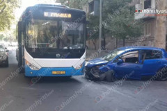 Վթար՝ Երևանում. բախվել են թիվ 32 երթուղին սպասարկող ավտոբուսն ու «Nissan»-ը, վիր...