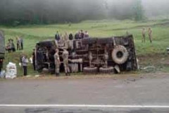 Իջևան-Սևան-Երևան ճանապարհին փայտե կոճղերով բարձված «Զիլ»-ը բախվել է երկաթե արգելապատնեշներին ու հայտնվել ձորում