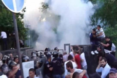 Այս պահին ոստիկանները լուսաձայնային նռնակներ են նետում ցուցարարների ուղղությամբ