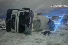 Խոշոր վթար՝ Կոտայքում. MAN բետոնախառնիչ բեռնատարը, մի քանի պտույտ շրջվելով, կողա...