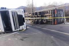 «DAF» մակնիշի կցորդիչով բեռնատար է կողաշրջվել