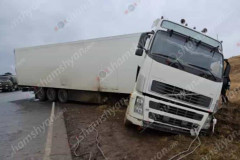 Արտակարգ դեպք՝ Արագածոտնում. Volvo բեռնատարը բախվել է հողաթմբին և մասամբ հայտնվե...