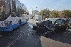 Խոշոր ավտովթար՝ Երևանում. բախվել են Toyota-ն և ավտոբուսը. վիրավորներ կան