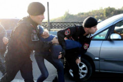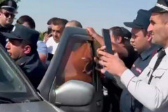 Ոստիկանները բռնի ուժ են կիրառում Երևան-Երասխ ճանապարհը փակած վարորդների նկատմամբ...