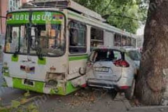 Տրոլեյբուսը տեխնիկական խնդիրներ ունենալու պատճառով բախվել է 3 ավտոմեքենայի․ Sham...