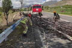 Երևան-Մեղրի ճանապարհին ծառի բունն այրվել է, այն ընկել է՝ ճանապարհը դարձնելով միա...