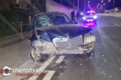 Երևանում Mercedes-ը տապալել է 10 մետր քարե պարիսպն ու հայտնվել մայթին