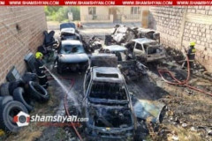 Հրդեհ՝ Աշտարակի ոստիկանության դիմաց խոտանված ավտոմեքենաների կայանատեղիում․ 7 ավտ...