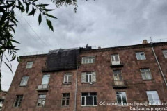 Ուժեղ քամին Գյումրիում պոկել է Ղանդիլյան փողոցի շենքերից մեկի տանիքի թիթեղները