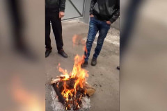 Անհետ կորած զինծառայողների հարազատները Էջմիածնի զորամասի մոտ կրակ են վառել եւ սպ...