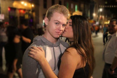 Համարձակ աղջիկը ձեռք է գցում տղաներին՝ հպվելով նրանց...