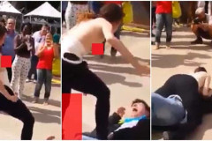 «Կուրծք ես ուզու՞մ». կինը տղամարդուն գցում է գետնին ու սկսում կրծքերով խփել նրա ...