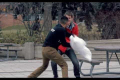 Բարձերով կռիվ՝ փողոցում (տեսանյութ)