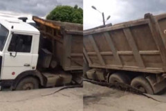 Վանաձորում ասֆալտը չի դիմացել բեռնատարի ծանրությանը