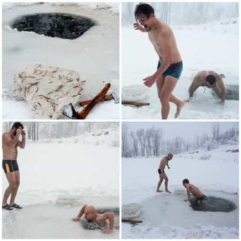Հայ մի խումբ կոփված երիտասարդներ ամանորյա տոներին անցկացրել են սառցաջրի մեջ լողալու «միջոցառում»՝ Ջրվեժի սառած լճակում սուզվելով իրենց կողմից բացված ջրահորի մեջ: