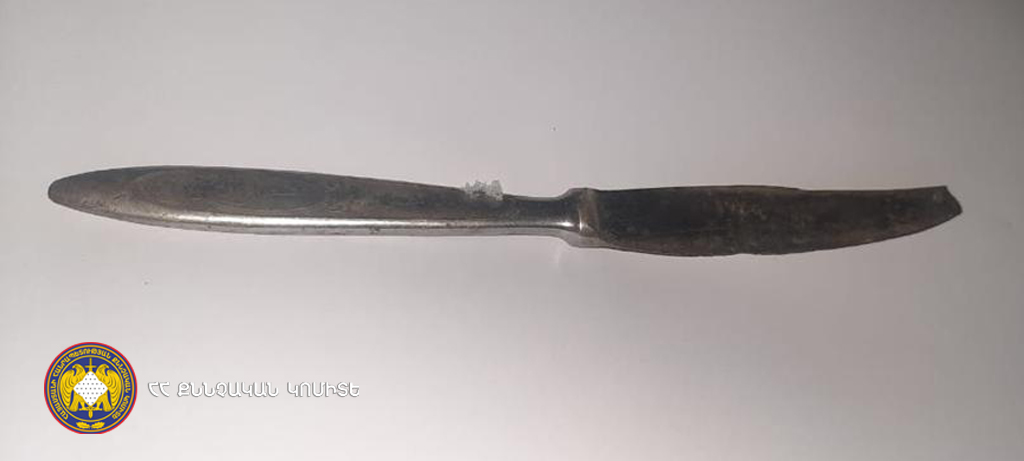 Գյումրի քաղաքի 59-ամյա բնակչի մասնակցությամբ կատարված քննչական փորձարարության ժամանակ հայտնաբերվել է հանցագործության գործիք հանդիսացող դանակը, որն առգրավվել է: