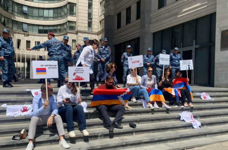 ՀԱՍԱՐԱԿՈՒԹՅՈՒՆԵրիտասարդները բողոքի ակցիա են իրականացրել ՀՀ արտաքին գործերի նախարարության շենքի դիմաց։ Նրանց ուսերին Հայաստանի ու Արցախի դրոշներն են, ձեռքներին պաստառներ՝ «Ամոթ», «Զիջելու հայրենիք չունենք», «Հայաստանը լինելու է, Արցախը լինելու է», «Մի կործանեք երկիրը», «Մինչեւ լավ ապրելը դեռ պետք է ապրել» գրություններով:
