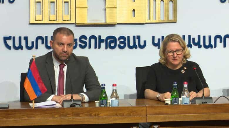 ՀՀ էկոնոմիկայի նախարար Վահան Քերոբյանը հանդիպում է ունեցել երկօրյա այցով Հայաստանում գտնվող Գերմանիայի տնտեսական համագործակցության և զարգացման դաշնային նախարար Սվենյա Շուլցեի հետ։
