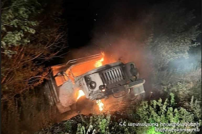 Հացիկ-Մայիսյան ավտոճանապարհին բեռնատար է բռնկվել, կան վիրավորներ