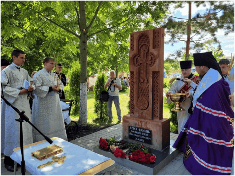 Հոգևորականները Լիվնի և Մալոարխանգելսկի եպիսկոպոս Նեկտարիոսի գլխավորությամբ օծել են նոր կրոնական խորհրդանիշը։ Միջոցառման մասնակիցները թարմ ծաղիկներ են դրել խաչ-խաչքարի մոտ։