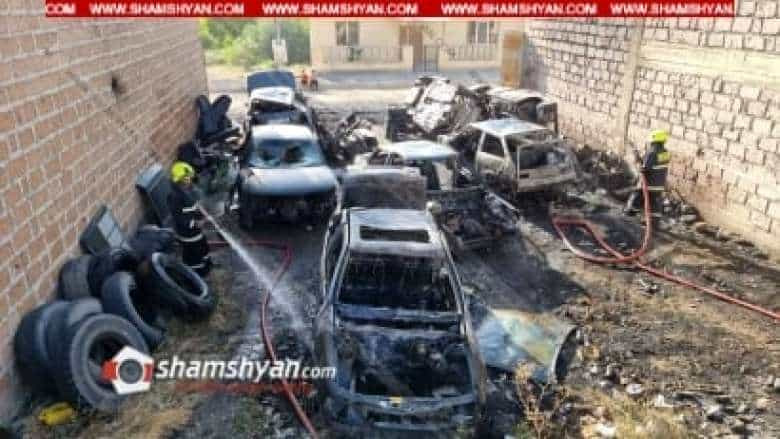 Հրդեհ՝ Աշտարակի ոստիկանության դիմաց խոտանված ավտոմեքենաների կայանատեղիում․ 7 ավտոմեքենա վերածվել է մոխրակույտի