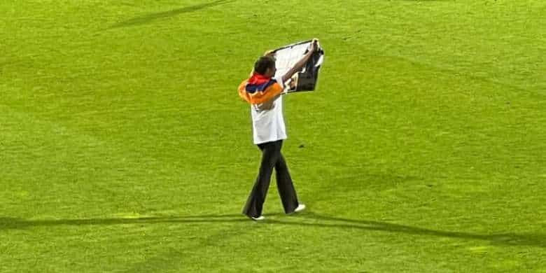 ՀԱՍԱՐԱԿՈՒԹՅՈՒՆԵրևանի «Հանրապետական» մարզադաշտում ՉԼ որակավորման 3-րդ փուլի «Փյունիկ» – «Ցրվենա Զվեզդա» հանդիպման երկրորդ խաղակեսի սկզբում մի խումբ երկրպագուներ պաստառները պարզած մտել են խաղադաշտ, որի վրա գրված էր «Աղավնոն չենք հանձնելու», տեղեկացնում է armsport.am-ը: