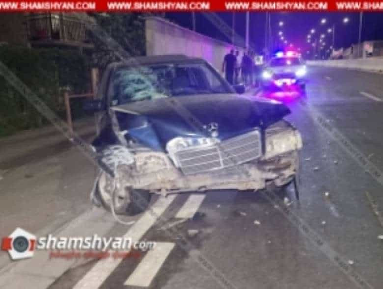 Երևանում Mercedes-ը տապալել է 10 մետր քարե պարիսպն ու հայտնվել մայթին