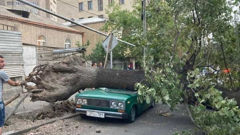 Քամու հետևանքով Չարենցավանում, Երևանում վնասվել են շինությունների տանիքներ, կոտրվել են ծառեր