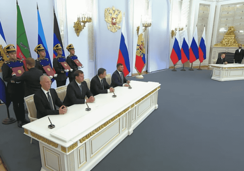 Ռուսաստանի նախագահ Վլադիմիր Պուտինը համաձայնագրեր է ստորագրել Դոնեցկի Ժողովրդական Հանրապետության (ԴԺՀ), Լուգանսկի Ժողովրդական Հանրապետության (ԼԺՀ), Խերսոնի եւ Զապորոժիեի շրջանների՝ ՌԴ-ին միանալու մասին: