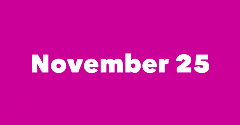 ՈՐՈՇ ՏՈՆԵՐ- Կանանց նկատմամբ բռնության վերացման համաշխարհային օր, Սուրինամ՝ Անկախության օր Նիդերլանդներից, Բոսնիա և Հերցեգովինա՝ Ազգային օր, Թուրքմենստան՝ Բերքի օր։
