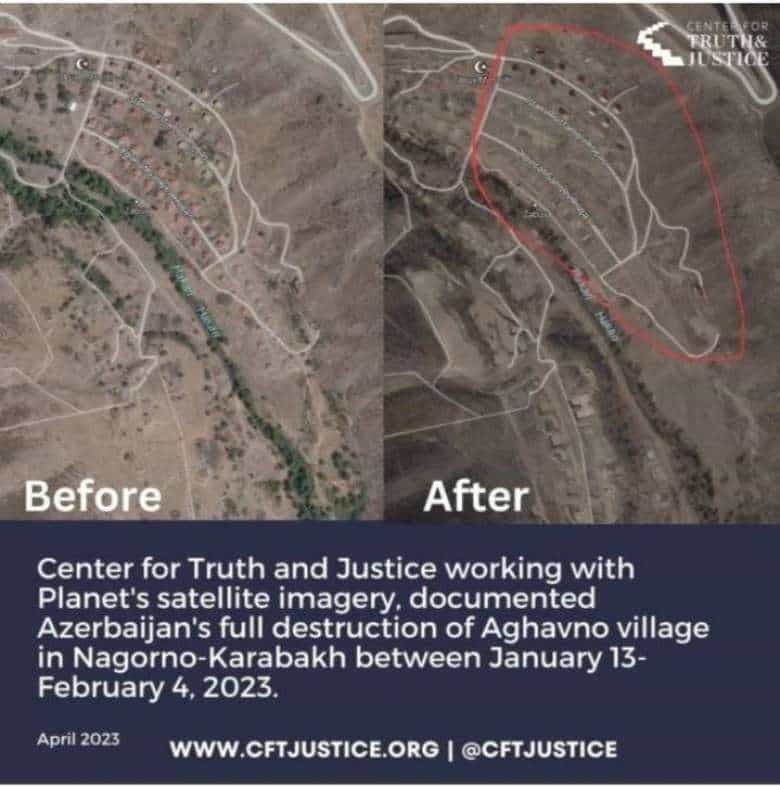 ՀԱՍԱՐԱԿՈՒԹՅՈՒՆPlanet-ի արբանյակային պատկերները փաստագրել են՝ 2023 թվականի հունվարի 13-ից փետրվարի 4-ն ընկած ժամանակահատվածում Ադրբեջանը Լեռնային Ղարաբաղի Աղավնո գյուղն ամբողջությամբ ոչնչացրել է: