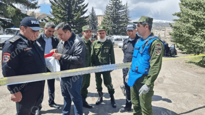 shamshyan.com-ի հաղորդմամբ՝ ժամը 11։00-ի սահմաններում ՀՀ ներքին գործերի նախարարության Ոստիկանության Պարեկային Ծառայության Կոտայքի մարզի գումարտակում օպերատիվ տեղեկություններ են ստացվել, որ Հրազդան քաղաքի Կենտրոն թաղամասի երկաթգծի կայարանի հարևանությամբ գտնվող բաց տարածքում, եղևնիների հարևանությամբ՝ մարտական նռնակ կա, որի կողքին էլ առկա են արնանման հետքեր։
