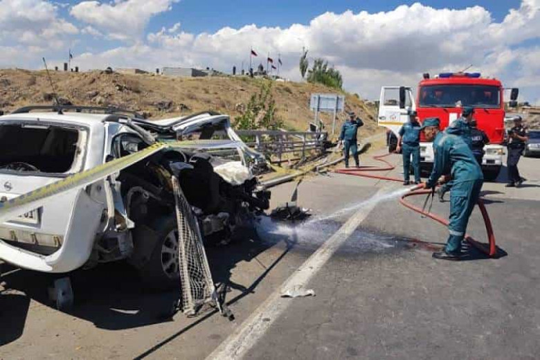 Փրկարարները հոսանքազրկել են ավտոմեքենան, փակել գազի բալոնի փականը և իրականացրել ճանապարհի լվացման աշխատանքներ: