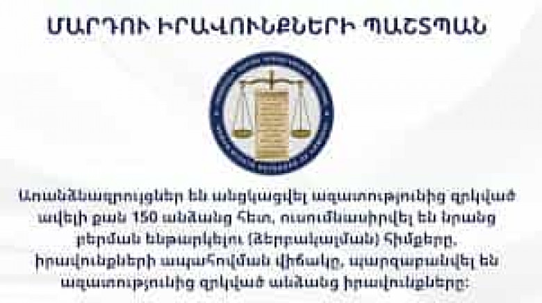 Նշված ժամանակահատվածում Պաշտպանի ներկայացուցիչները վերոնշյալ մարմիններում առանձնազրույցներ են ունեցել ազատությունից զրկված ավելի քան 150 անձանց հետ, ուսումնասիրվել են նրանց բերման ենթարկելու (ձերբակալման) հիմքերը, իրավունքների ապահովման վիճակը, պարզաբանվել են ազատությունից զրկված անձանց իրավունքները։