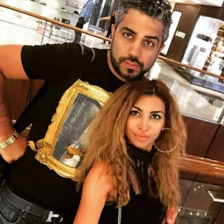 Դերասան Ալեքսանդր Բաբասյանի կինը կրում է չափազանց կարճ սև զգեստ և բարձրակրունկներ, որոնք ընդգծում են նրա ոտքերի գեղեցկությունը: