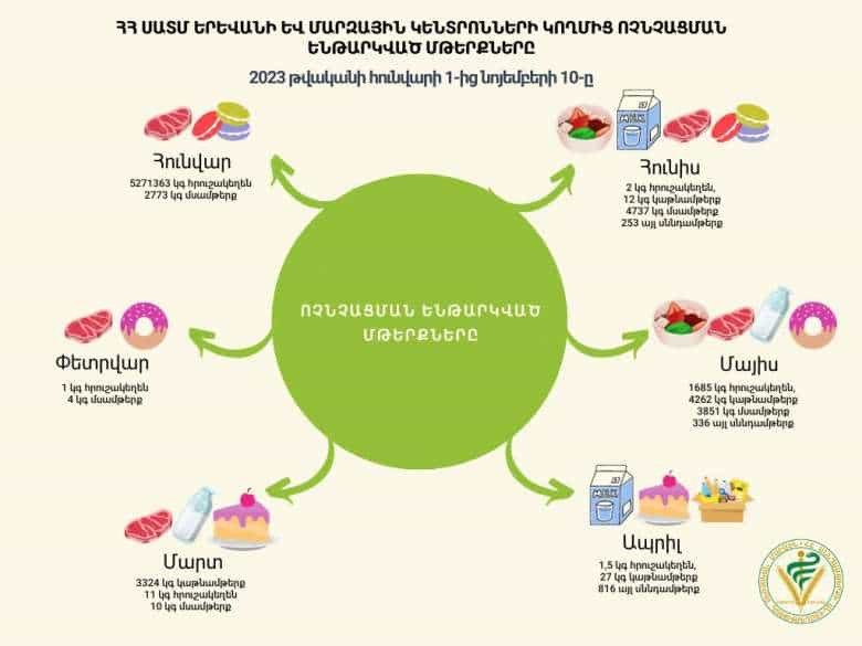 Վտանգավոր սննդամթերքը ոչնչացվել է և՛ տնտեսավարողների դիմումների հիման վրա, և՛ վերահսկողական միջոցառումների արդյունքում։