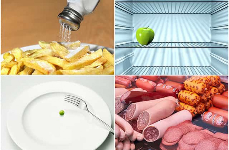 1. Աղի չափազանց շատ օգտագործում։ Աղն օրգանիզմում է պահում ավելորդ հեղուկը՝ մեծացնելով սրտի և երիկամների ծանրաբեռնվածությունը։ Առողջապահության համաշխարհային կազմակերպությունը 7 տարեկանից բարձր երեխաներին և մեծահասակներին խորհուրդ է տալիս օրվա ընթացքում 5 գրամից ավելի աղ չօգտագործել։ Մի մոռացեք, որ բացի ճաշատեսակներին ավելացվող աղից՝ այն պարունակում են նաև մի շարք այլ մթերքներ՝ հաց, թխվածք, կիսաֆաբրիկատներ և այլն։