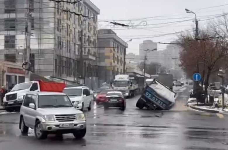Ավանում բեռնատարը ընկել է փոսը (տեսանյութ)