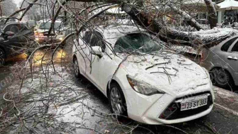 Արտակարգ իրավիճակ՝ Երևանի կենտրոնում. հսկայական ծառը պոկվել ու ընկել է երթևեկող ավտոմեքենաների վրա
