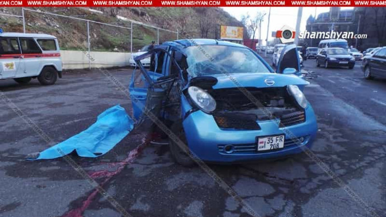 Ողբերգական վթար Մյասնիկյան պողոտայում. Nissan March-ի 24-ամյա վարորդը բախվել է սյանը եւ տեղում մահացել (ֆոտո)