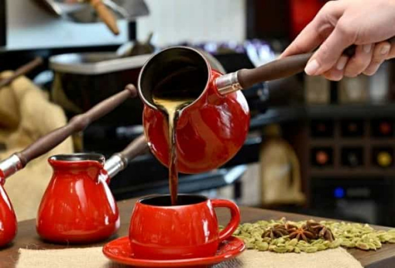 200 մլ ջուր Խառնեք դարչինն ու սուրճը, ավելացրեք սառը ջուրը, դրեք կրակին և եփեք մինչև փրփուր առաջանա: