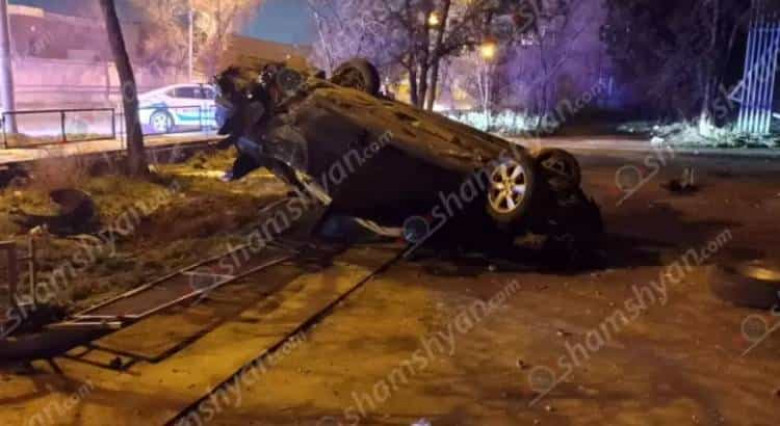 Խոշոր վթար՝ Երևանում․ անչափահասը Toyota-ով կոտրել է ծառերն ու գլխիվայր շրջվել, վիրավորներն անչափահասներ են