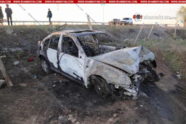 Խոշոր ավտովթար-հրդեհ Արարատի մարզում. 25-ամյա վարորդը Volkswagen-ով բախվել է բետոնե արգելապատնեշին, կոտրել ու շպրտել այն և հայտնվել դաշտում.. ՖՈՏՈՌԵՊՈՐՏԱԺ