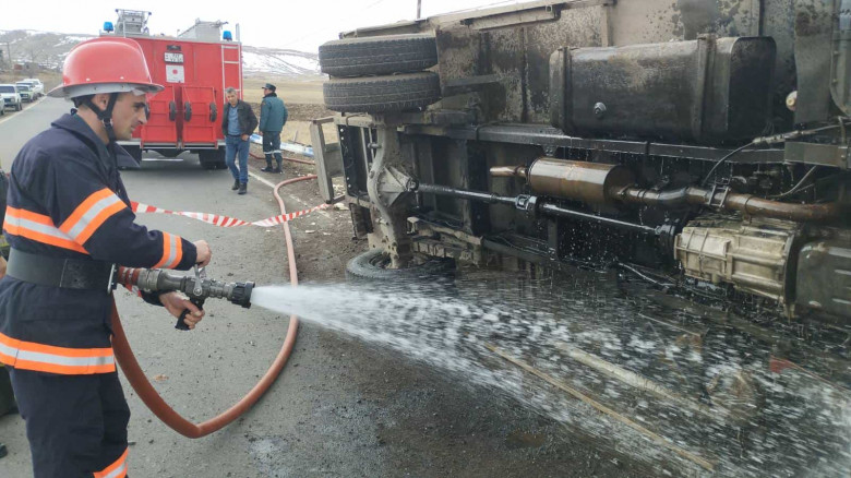 ՃՏՊ Արթիկ-Պեմզաշեն ավտոճանապարհին․ բեռնատար է կողաշրջվել (լուսանկարներ)