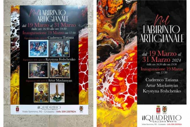 В галерее «Ильквадривио» в итальянском городе Гроссето открылась выставка «Лабиринт ремесленников», на которой были представлены работы уроженца Гюмри Артура Майламяна. Как сообщает «Арменпресс», выставка, которая проводится под эгидой муниципалитета Гроссето и одноименного региона, будет открыта до 31 марта.