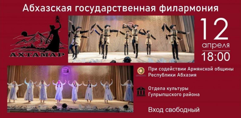 Ապրիլի 12-ին՝ ժամը 18:00-ին, Աբխազիայի պետական ​​ֆիլհարմոնիայում տեղի կունենա «Ախթամար» պարային խմբի համերգը։ Այս մասին հայտնում է Աբխազիայի Հանրապետության հայ համայնքի տելեգրամյան ալիքը։