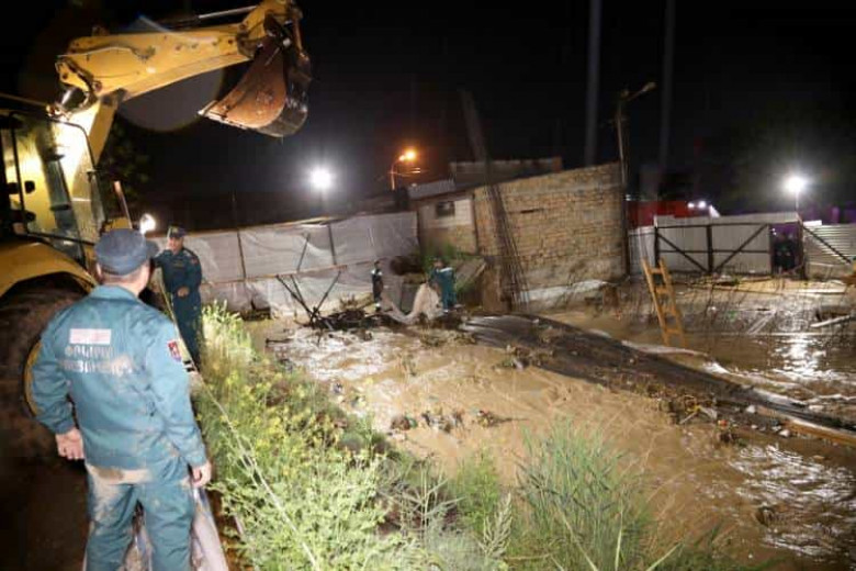 Փրկարարները ձեռքով և քաղաքապետարանի տրամադրած հատուկ տեխնիկայի (տրակտոր) օգնությամբ իրականացնում են գետի հունի մաքրման, երկաթբետոնե կառուցատարրերի տեղափոխման, մոտոպոմպով՝ ջրալցված տներից ջրահեռացման աշխատանքներ, ավազով լցված պարկերով փակել են պատնեշի վնասված հատվածները։